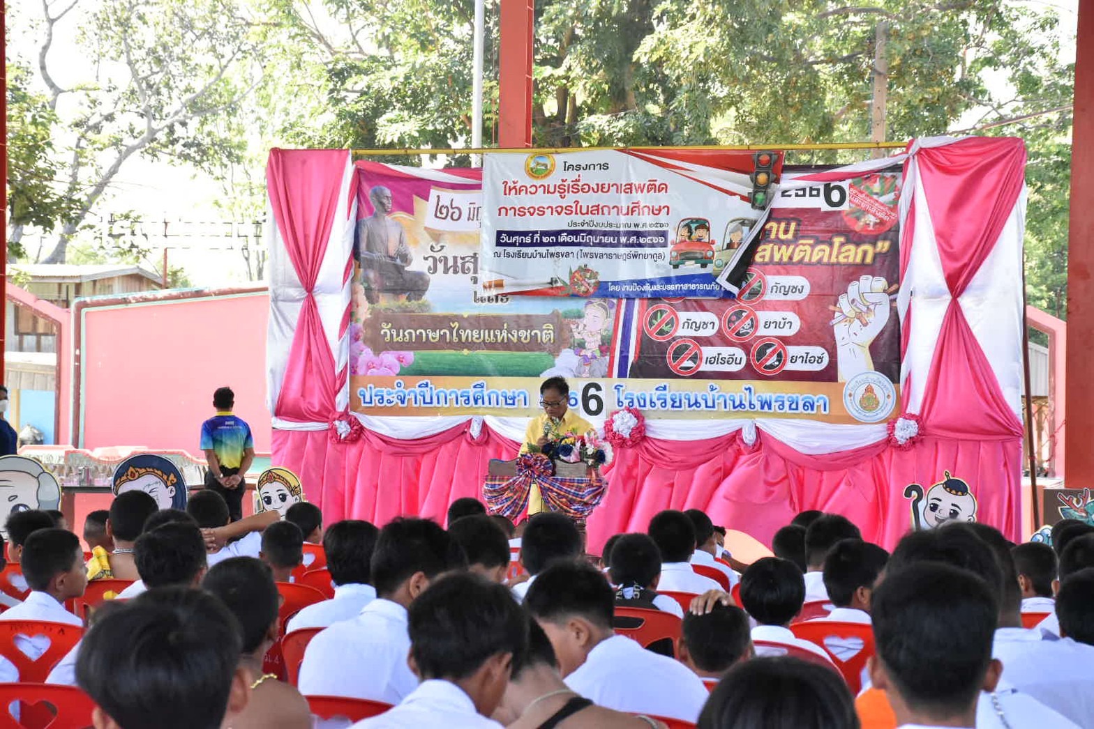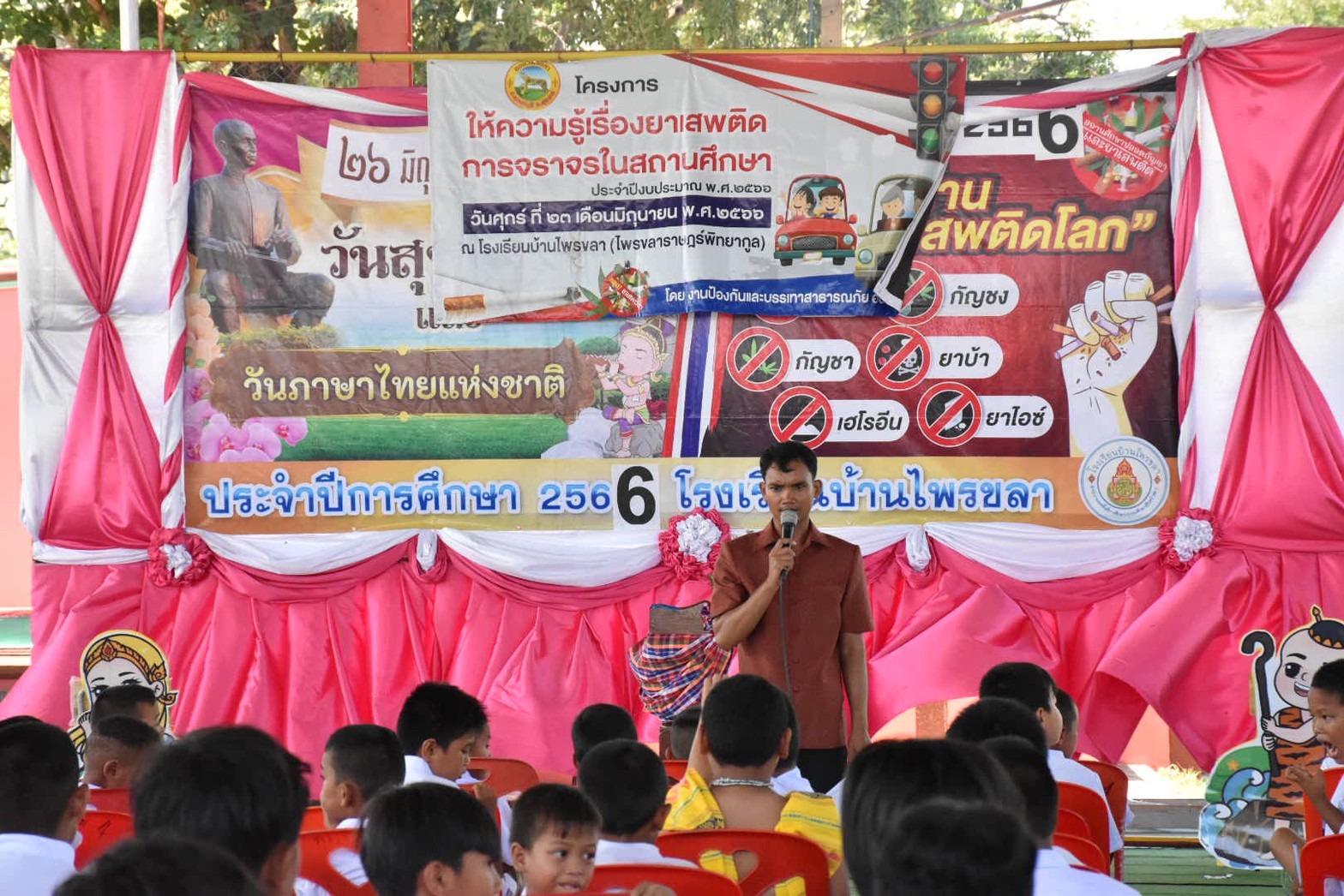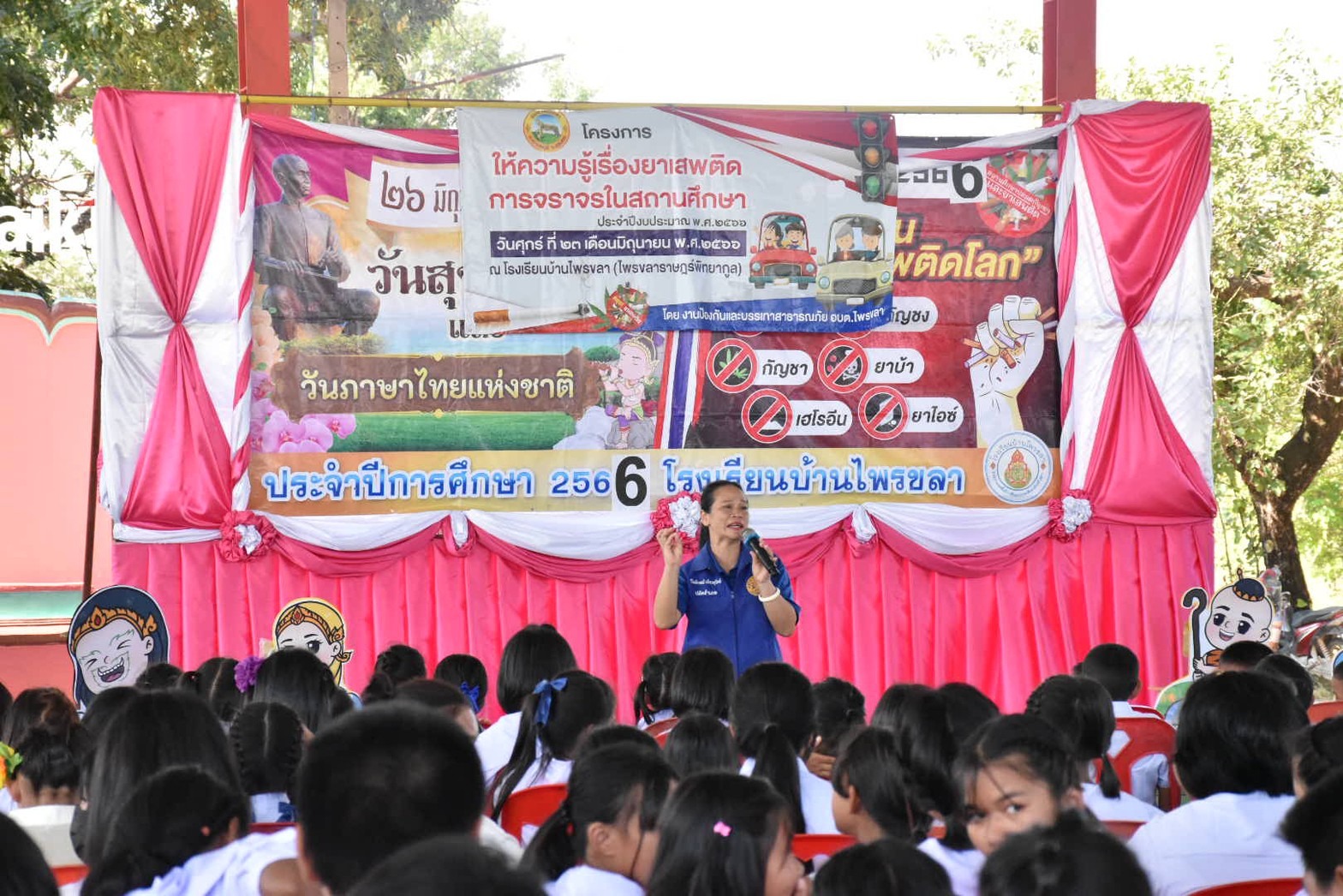 โครงการให้ความรู้เรื่องยาเสพติด การจราจรในสถานศึกษา ประจำปีงบประมาณ พ.ศ.2566 วันศุกร์ ที่ 23 มิถุนายน 2566 องค์การบริหารส่วนตำบลไพรขลา โดยนายเฉลิมชัย คารศรี นายกอบต.ไพรขลา , นายไพฑูลย์ ปัญญาเดชานนท์ รองปลัด อบต.ฯ , หัวหน้าส่วนราชการ ข้าราชการ พนักงานจ้างส่วนตำบล พร้อมด้วยคณะครูและนักเรียนโรงเรียนบ้านไพรขลา(ไพรขลาราษฎร์พิทยากูล) ทุกคน #โครงการให้ความรู้เรื่องยาเสพติด การจราจรในสถานศึกษา ประจำปีงบประมาณ พ.ศ.2566 #วัตถุประสงค์ 1. เพื่อสร้างความรู้ความเข้าใจให้เด็กและเยาวชนได้มีภูมิคุ้มกันด้านป้องกันและห่างไกลภัยยาเสพติด 2. เพื่อสร้างศักยภาพเครือข่ายสภาเด็กและเยาวชนในการจัดกิจกรรมสร้างสรรค์ป้องกันและระวังภัยยาเสพติด 3. เพื่อสร้างกลไกการมีส่วนร่วมในการลดปัญหาการแพร่ระบาดของยาเสพติด ขอบคุณ นางวิไลลักษณ์ เพ็ชรสุรักษ์ วิทยากรจากปกครองอำเภอชุมพลบุรี ขอบคุณ ผู้บริหารสถานศึกษา คณะครู และบุคลากร โรงเรียนบ้านไพรขลา(ไพรขลาราษฎร์พิทยากูล) ทุกคน