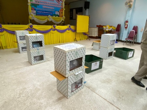 วันที่ 28 พฤศจิกายน 2564 รับมอบวัสดุ อุปกรณ์ การเลือกตั้งจากตัวแทนแต่ละหมู่บ้าน
