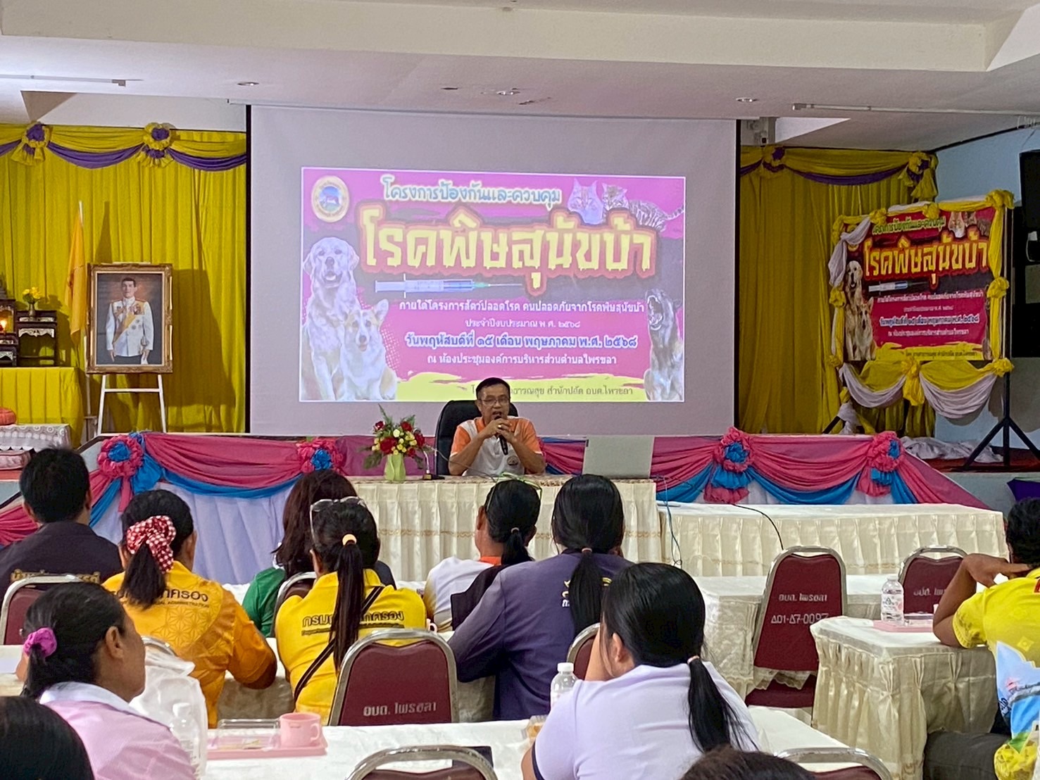 โครงการป้องกันและควบคุมโรคพิษสุนัขบ้า ประจำปีงบประมาณ พ.ศ. 2568 วันที่ 15 พฤษภาคม 2568 งานสาธารณสุข สำนักปลัด อบต.ไพรขลา ดำเนินการจัดโครงการป้องกันและควบคุมโรคพิษสุนัขบ้า ภายใต้โครงการสัตว์ปลอดโรค คนปลอดภัยจากโรคพิษสุนัขบ้า ประจำปีงบประมาณ พ.ศ. 2568 โดย นายเฉลิมชัย คารศรี นายก อบต.ไพรขลา ประธานในพิธีเปิด/นายไกรสร มีพันธ์ รองปลัด อบต./นางสาวสุนันทรา ผิวทวี หัวหน้าสำนักปลัด/เจ้าหน้าที่ที่เกี่ยวข้อง พร้อมด้วย ตัวแทนผู้นำชุมชน คณะกรรมการหมู่บ้าน ณ ห้องประชุม อบต.ไพรขลา
