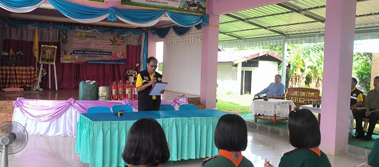 โครงการส่งเสริมความรู้เรื่องยาเสพติด และการจราจรในสถานศึกษา วันที่ 3 เดือน กรกฏาคม พ.ศ.2567 นายเฉลิมชัย คารศรี นายกองค์การบริหารส่วนตำบลไพรขลา ประธานในพิธี นายณรงค์ ชีวาจร รองนายกอบต.ไพรขลา / นายไกรสร มีพันธ์ รองปลัดอบต.ไพรขลา /นายวรพจน์ สร้อยจิตร ผู้อำนวยการโรงเรียนบ้านโพนม่วง /นายเทพศิริ ยางสามแพรก ผู้อำนวยการโรงเรียนบ้านโพนม่วง / พร้อมด้วยคณะครู และนักเรียนโรงเรียนบ้านโพนม่วง ได้ร่วมเป็นเกียรติในพิธีเปิด #โครงการส่งเสริมความรู้เรื่องยาเสพติด และการจราจรในสถานศึกษา ประจำปีงบประมาณ 2567 โดยมีวัตถุประสงค์ 1.เพื่อให้ผู้เข้าร่วมโครงการทราบถึงปัญหายาเสพติด การจราจรในสถานศึกษา 2. เพื่อปลูกจิตสำนึกของนักเรียน ให้ตระถึงพิษภัยยาเสพติดที่มีผลร่างกายและส่งผลกระทบต่อปัญหาสังคม 3.เพื่อสร้างแกนนำ เยาวชน และนักเรียนให้ต่อต้านยาเสพติด ร่วมกันปฏิบัติตามกฏตราจรในสถานศึกษา 4.เพื่อเป็นการรวมภาคเครือค่ายทุกภาคส่วน ให้เข้ามามีส่วนร่วมในการแก้ไขปัญหายาเสพติดและการจราจร