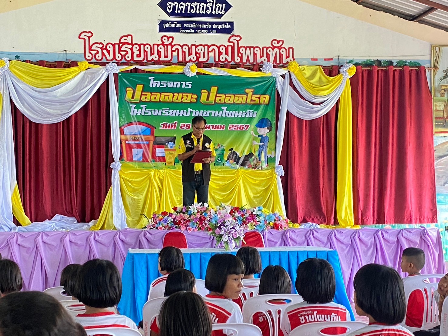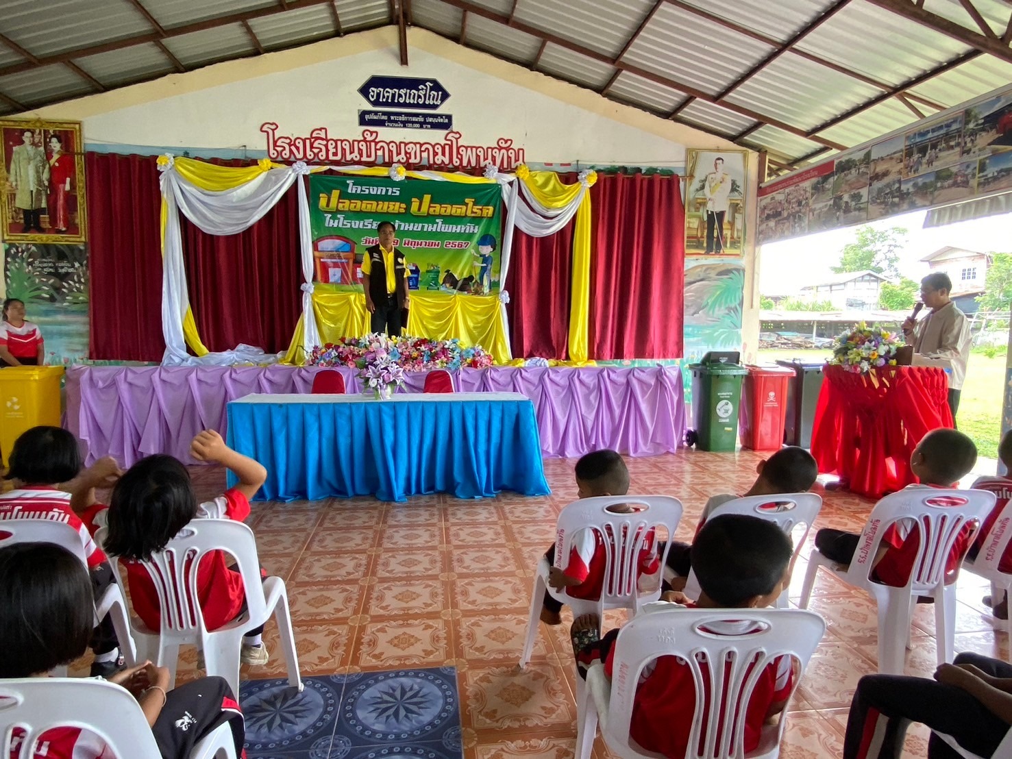 โครงการปลอดขยะ_ปลอดโรค ประจำปีงบประมาณ 2567 วันเสาร์ ที่ 29 เดือน มิถุนายน พ.ศ.2567 นายเฉลิมชัย คารศรี นายกองค์การบริหารส่วนตำบลไพรขลา ประธานในพิธี พร้อมด้วยนายสมเกียรติ์ บุญล้อม ผู้อำนวยการโรงเรียนบ้านขามโพนทัน พร้อมด้วยคณะครูและนักเรียน ได้ร่วมเป็นเกียรติในพิธีเปิด #โครงการปลอดขยะ_ปลอดโรค ประจำปีงบประมาณ 2567 โดยมีวัตถุประสงค์ คือรู้จักการคัดแยกขยะอย่างถูกวิธี เพื่อความสะอาด ปลอดโรค และการกำจัดขยะในครัวเรือน การกำจัดขยะในห้องเรียน และการคัดแยกขยะเพื่อสร้างรายได้ โดยใช้งบประมาณ กองทุนประกันสุขภาพองค์การบริหารส่วนตำบลไพรขลา จัดโดยโรงเรียนบ้านขามโพนทัน หมู่ 2 ต.ไพรขลา อ.ชุมพลบุรี จ.สุรินทร์